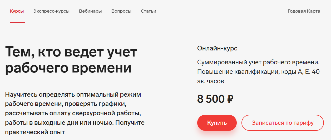 Опубликован новый курс «Суммированный учет рабочего времени. Повышение квалификации, коды А, Е. 40 ак. часов»
